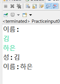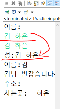 김 하은: "김", "하은" 분리하기 때문에 "김" 만 입력받는다.