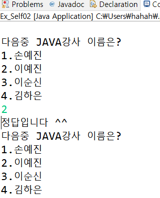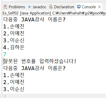 +"\n1.손예진\n2.이예진\n3.이순신\n4.김하은");
