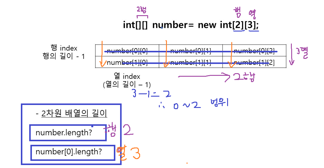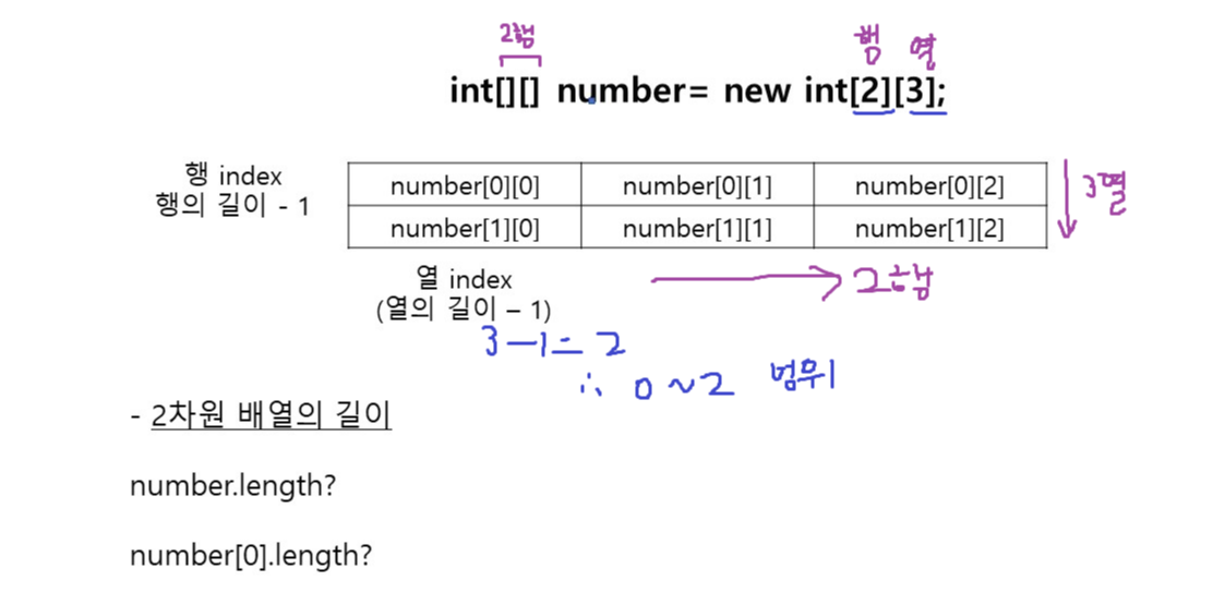 1. 2차월 배열에서 첫번째 대괄호로 접근한 행들은 주소값이 되고, 두번째 대괄호로 접근하는 열들이 값이 된다.