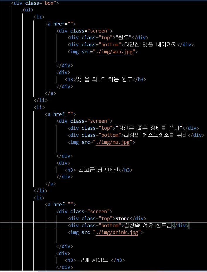 3. <li> 태그 안에 <a href=""> 를 넣어주고 한개의 이미지 안에 들어갈