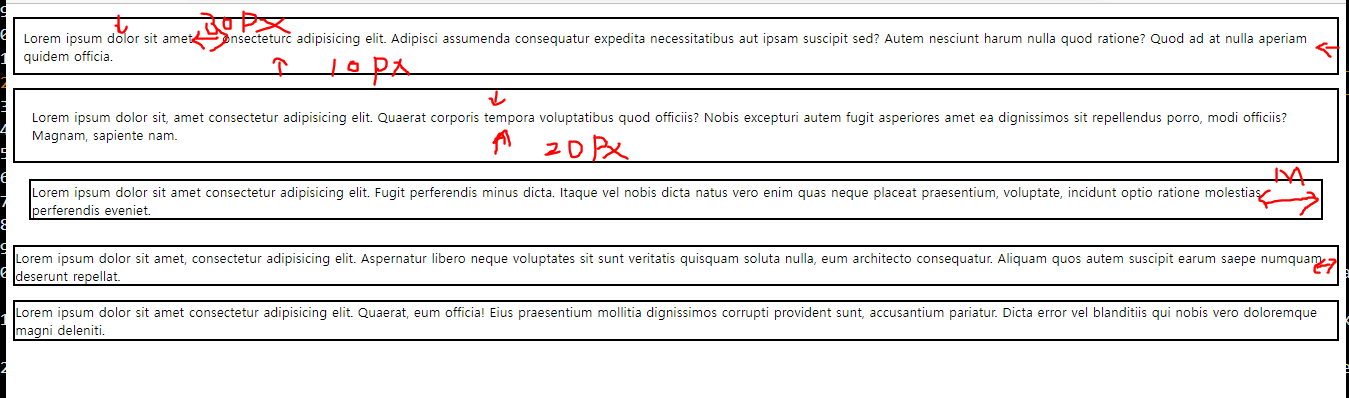 - 각각의 이름값 안에 마진과 , 패딩의 값을 넣어준다 .
