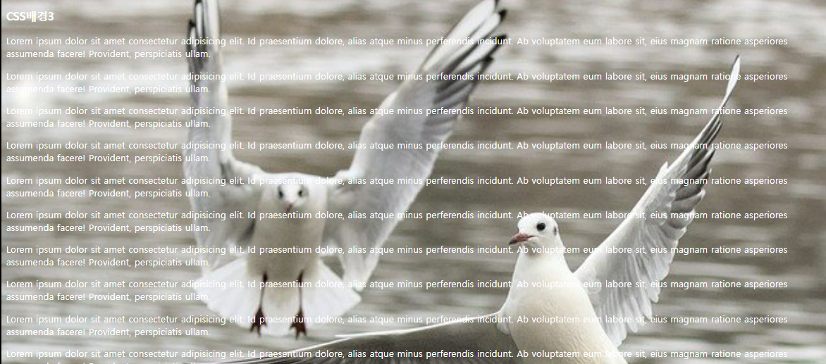 텍스트 컬러를 흰색 , 그리고 배경 사진이 움직이지 않게 고정 시켰다.